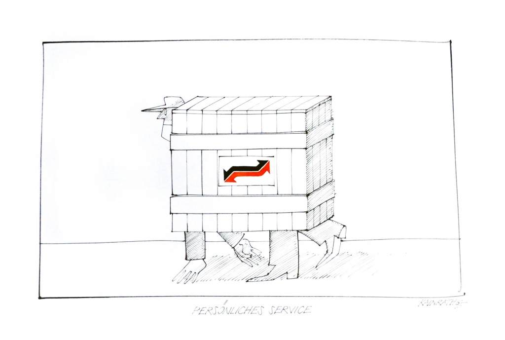 Der bekannte Tiroler Karikaturist Dietmar Kainrath lies sich vom Transportwesen inspirieren und schuf Zeichnungen, die selbst wiederum Inspiration für die tägliche Arbeit bei Inntaler Transporte sind. Dietmar Kainraths Karikaturen überzeugen durch hintergründigen Humor.